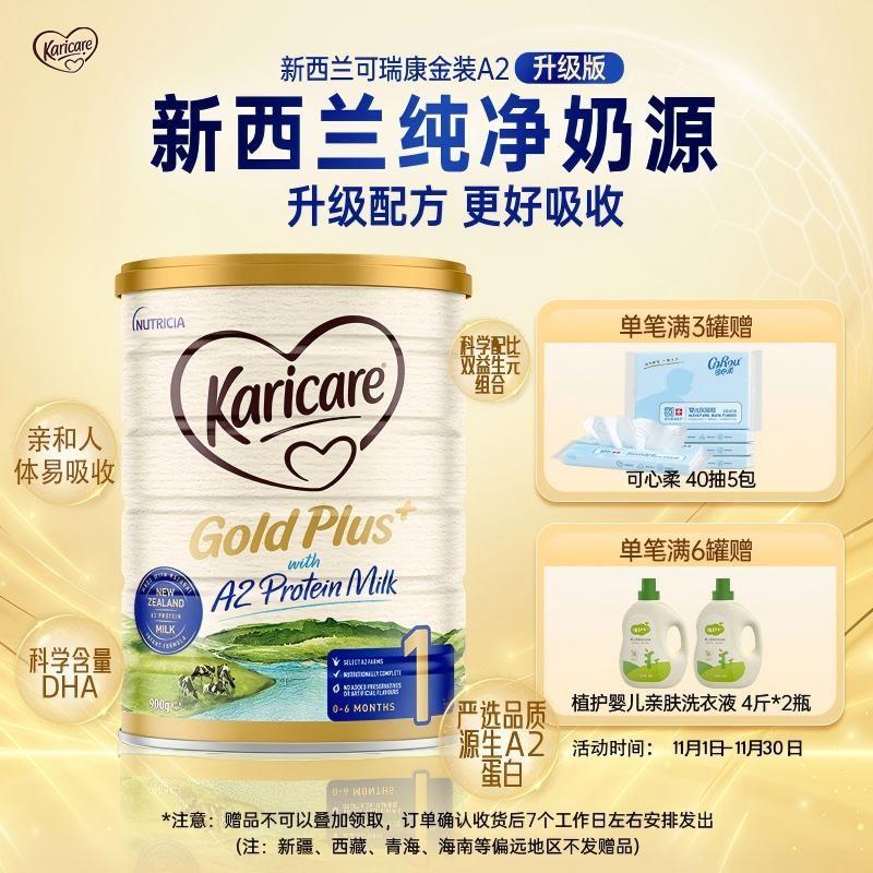 【满3罐赠礼品】Karicare可瑞康金装A2蛋白婴儿配方奶粉1段 0-6月 900g
