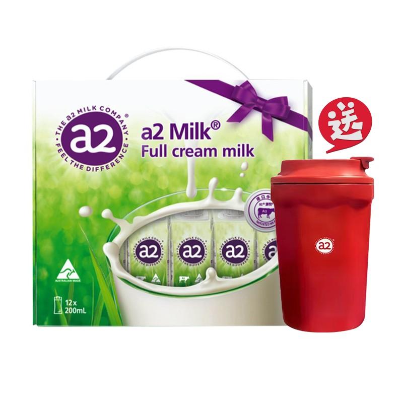 (赠送不锈钢咖啡杯)a2牛奶 高端纯牛奶 原装进口 全脂 200ml*12盒/提