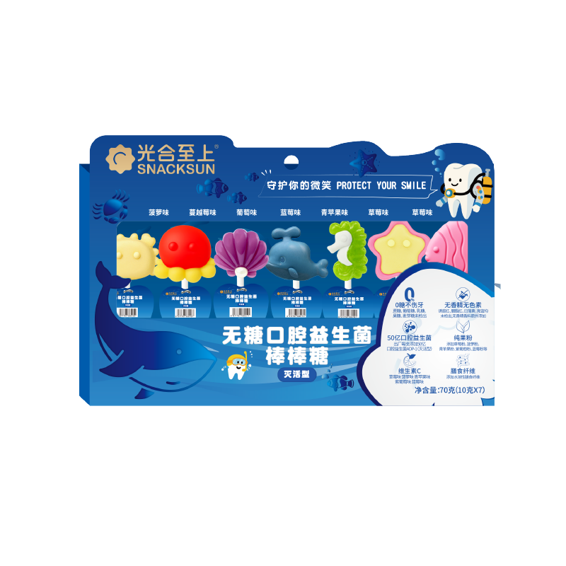 snacksun光合至上 无糖口腔益生菌棒棒糖 海洋系列款 70g/盒